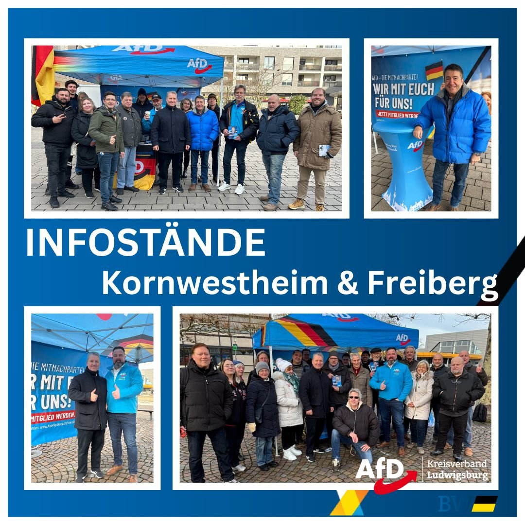 Liebe Mitglieder, Förderer und Freunde unserer AfD Ludwigsburg, weiter geht es, wie am laufenden Band, mit den nächsten Infoständen am 24.01.2026. Bleiben wir g...