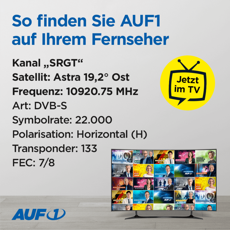 AUF1 ist wieder da - nein, war nie weg! Der Zensurangriff konnte (noch einmal) erfolgreich abgewehrt werden. Empfangen Sie Ihr Fernsehen über Satellit? Glückwuns...