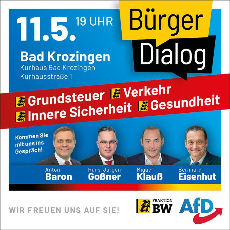 BÜRGERDIALOG 15. Mai 2023, 18:00 Uhr, Stadthalle Biberach Bürgerdialog der AfD Landesgruppe im Deutschen Bundestag, am Montag, 15. Mai 2023, 18:00 Uhr in der St...