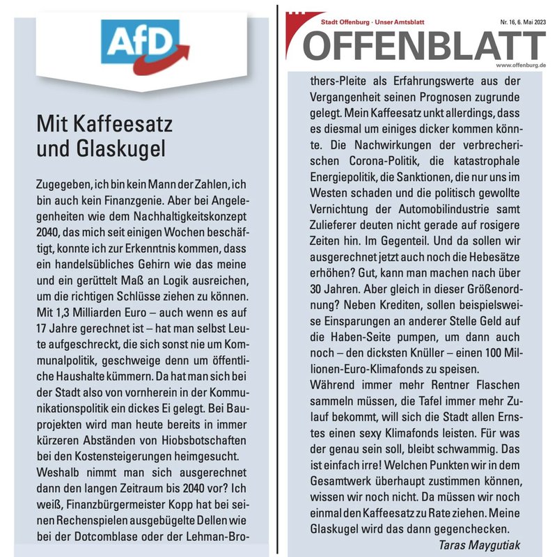 Mit Kaffeesatz und Glaskugel - Taras Maygutiaks Meinungsbeitrag im Offenblatt