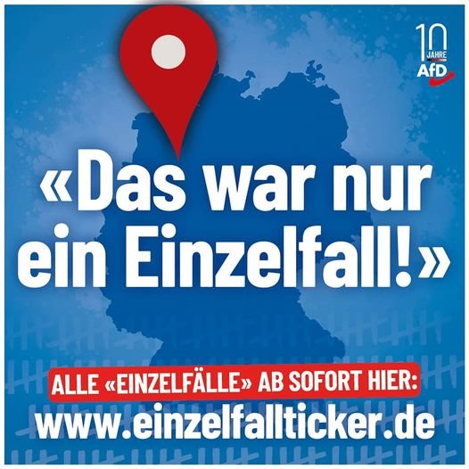 Um auf die Häufigkeit und die grausame Dimension sogenannter „Einzelfälle“ aufmerksam zu machen, hat die AfD das Informationsportal „Einzelfallticker“ (ht...