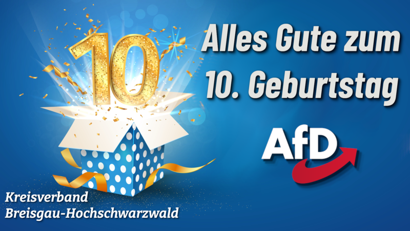 Herzlichen Glückwunsch zum 10-jährigen Jubiläum der Alternative für Deutschland! In den vergangenen 10 Jahren haben wir uns als feste Größe im politischen Bet...