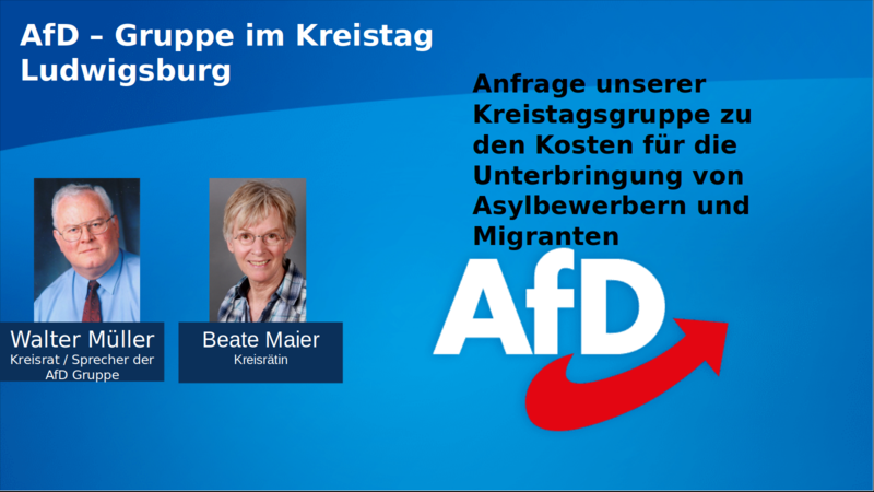 Auch im Ludwigsburger Kreistag ist die Alternative für Deutschland nicht untätig. Unsere Kreisräte Walter Müller und Beate Maier wollen wissen, wie hoch genau d...