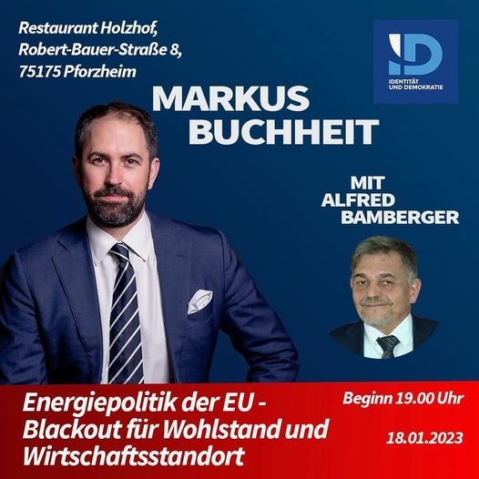 Am Mittwoch, 18.01.2023 um 19 Uhr lädt der Kreisverband Westlicher Pforzheim/Enzkreis zum Vortragsabend ein. Gastredner Markus Buchheit, MdEP. Thema: Energiepol...