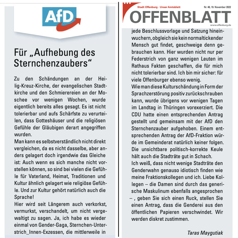 Für "Aufhebung des Sternchenzaubers" - Taras Maygutiaks Meinungsbeitrag im Offenblatt
