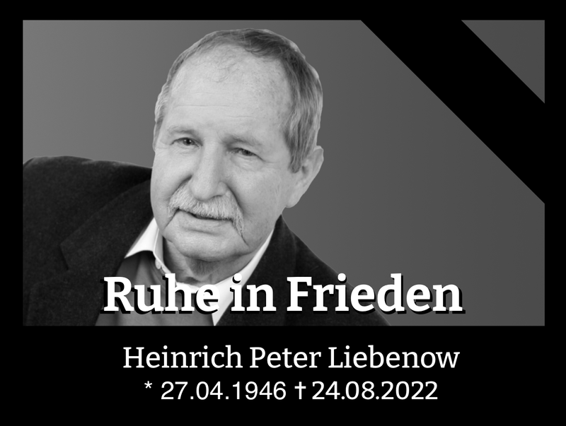 Leider haben wir Ihnen eine traurige Nachricht mitzuteilen: Am Mittwoch ist unser langjähriges Mitglied und Vorstandskollege Heinrich Peter Liebenow im Alter von ...