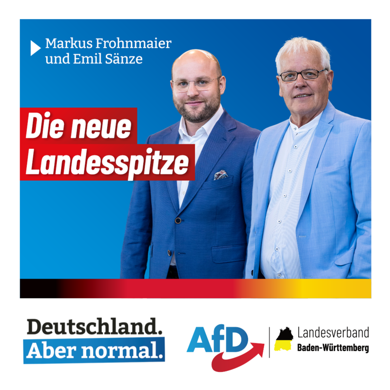Die AfD Baden-Württemberg hat eine neue Doppelspitze gewählt: Herzlichen Glückwunsch an unsere beiden Landesvorsitzenden Markus Frohnmaier und Emil Sänze!