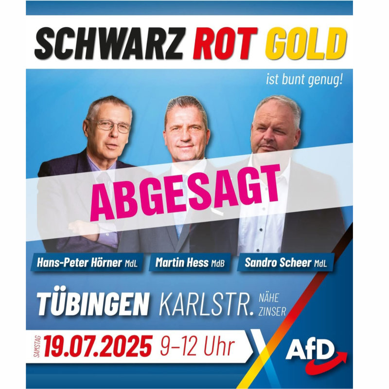 Sehr geehrte Mitglieder des Kreisverbandes der AfD Zollernalb und des Freundeskreises der AfD Zollernalb,   wie schon dem Pressebericht von OB Palmer / Tübin...
