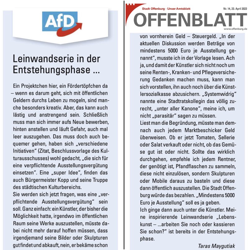 Taras Maygutiaks Beitrag im Meinungsforum des Offenblatt, dem Amtsblatt der Stadt Offenburg