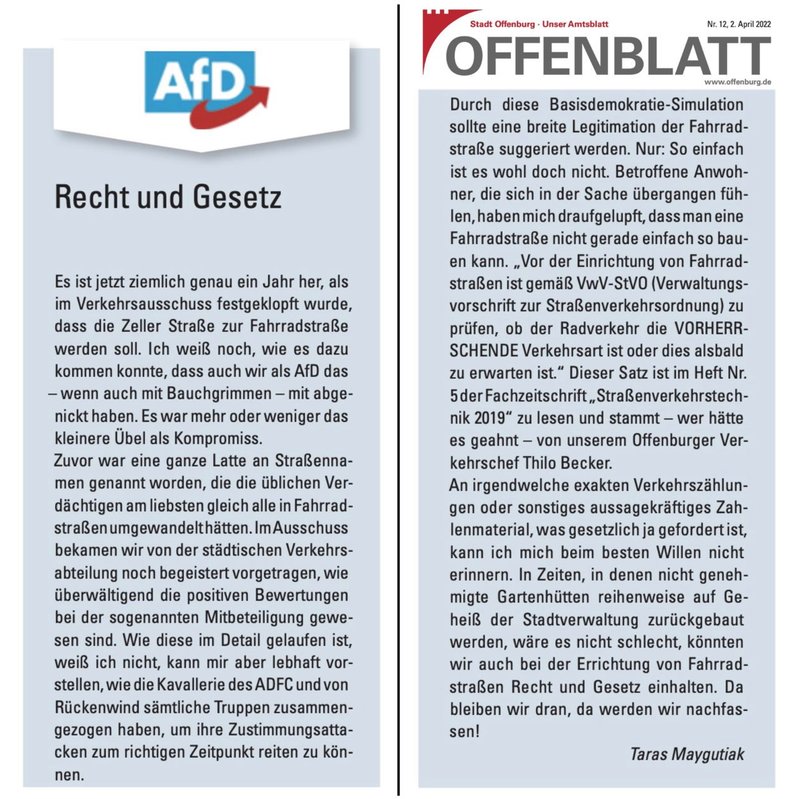 Taras Maygutiaks Beitrag im Meinungsforum des Offenblatt, dem Amtsblatt der Stadt Offenburg