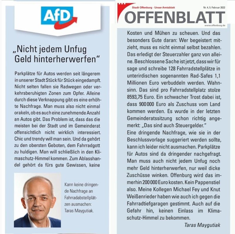 Taras Maygutiaks Beitrag im Meinungsforum des Offenblatt, dem Amtsblatt der Stadt Offenburg