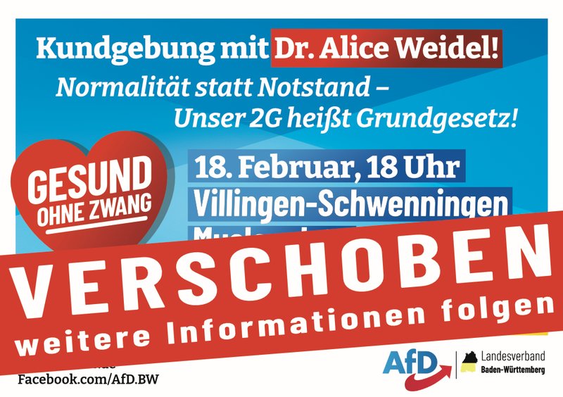 Aufgrund höherer Gewalt kann unsere geplante Kundgebung in Villingen-Schwenningen leider nicht durchgeführt werden. Es besteht eine Wetterwarnung. So werden für ...