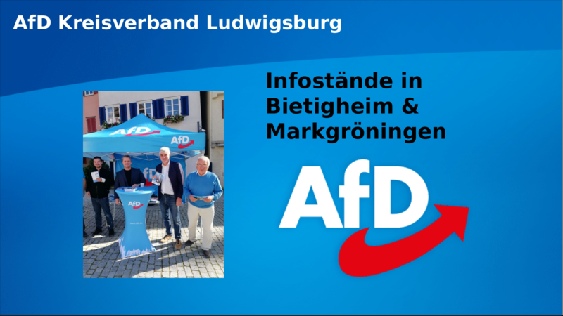 Auch am heutigen Samstag war der Kreisverband Ludwigsburg gleich an zwei Orten präsent. In Bietigheim und Markgröningen haben wir noch einmal alles für die bevorstehende Wahl gegeben. Bei bestem Spätsommerwetter waren der Kreisvorstand, sowie unsere Spitzendkandidaten Dr. Marc Jongen, MdB und M...