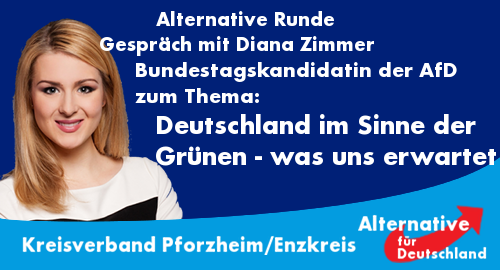 Unser bewährtes Feierabendformat „Alternative Runde“ wird auch in der kommenden Woche am 19.05.2021 um 20 Uhr als Livestream durchgeführt. Hierzu möchten wir Sie herzlichst einladen. Es erwartet Sie eine gemütlich informative Runde mit unserer Bundestagskandidatin Diana Zimmer und ihrem St...