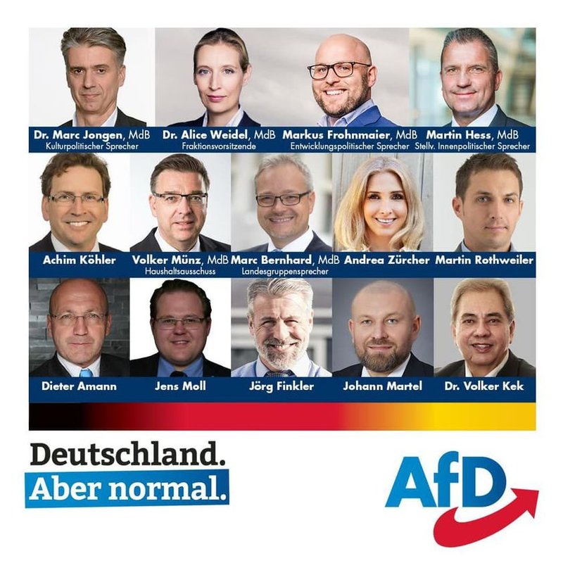 Markus Frohnmaier Alice Weidel Achim Köhler - AfD Andrea Zürcher Jens Moll Dr. Marc Jongen Martin Hess MdB Johann Martel Marc Bernhard MdB Martin Rothweiler - AfD Dieter Amann, Volker Munz, Dr. Volker Kek und Jörg Finkler Mit einer starken Landesliste aus Baden-Württemberg in den Bundestagswahl...