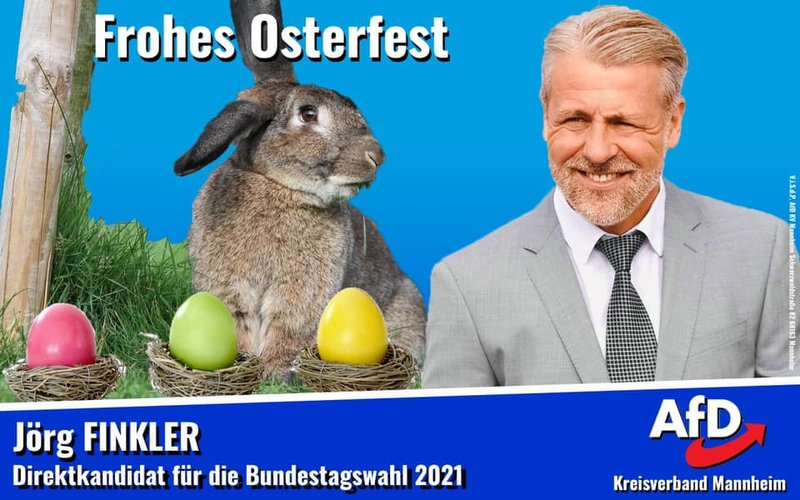 Frohe Ostern wünscht Jörg Finkler, Spitzenkandidat für die Bundestagswahl stellvertretend für den KV Mannheim