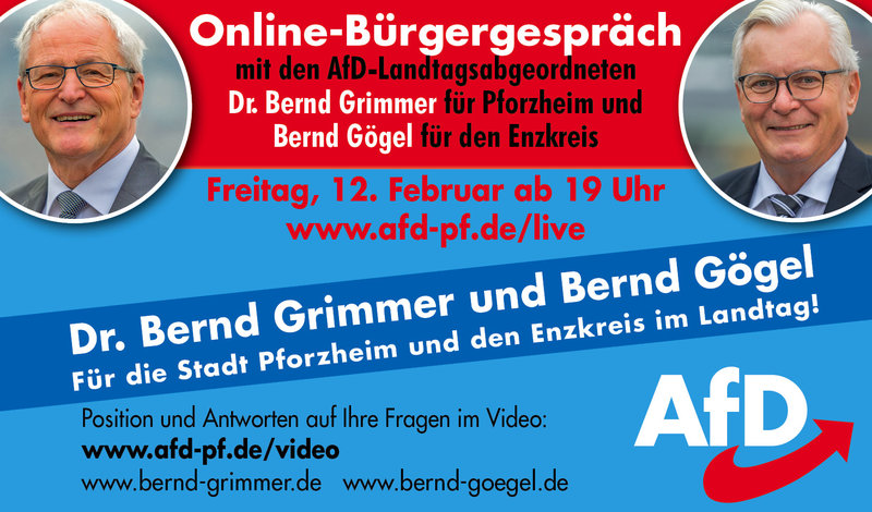 Online-Bürgergespräch mit den Landtagsabgeordneten Dr. Bernd Grimmer und Bernd Gögel