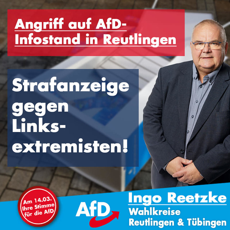 Angriff auf AfD-Infostand in Reutlingen: Strafanzeige gegen Linksextremisten