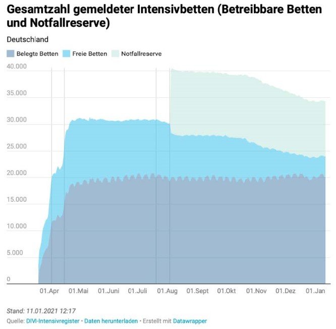 Gesundheitssystem Den Daten des DIVI-Intensivbettenregisters zufolge gibt es nach wie vor keine Überlastung des Gesundheitssystems. Die Zahl der belegten Intensivbetten beträgt seit dem Frühjahr konstant ca. 20.000. Mit Notfallreserve betragen die freien Kapazitäten ca. 35.000 Betten. Allerdings...