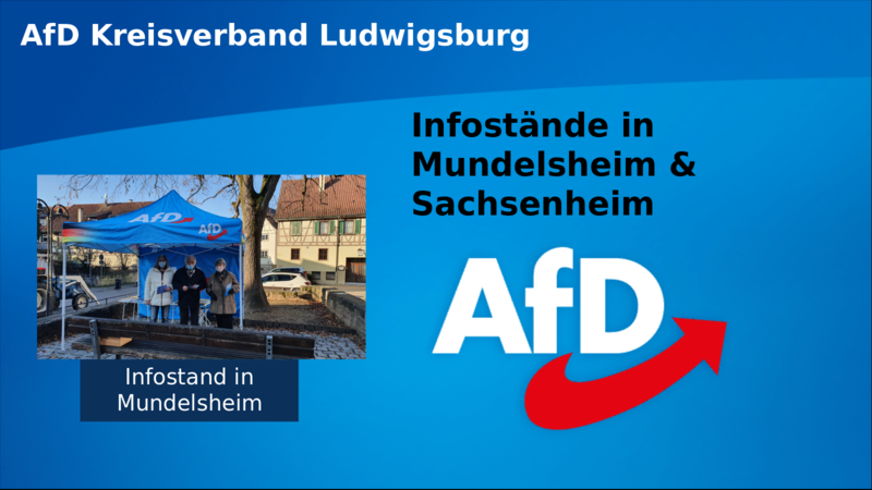 Trotz der niedrigen Temperaturen, überzogener Corona-Verordnungen und des zeitgleich stattfindenden Parteitags, hat der Kreisverband Ludwigsburg wieder seine Zelte bzw. Infostände aufgeschlagen. Diesmal waren wir zu Gast in Mundelsheim und Sachsenheim. Wieder konnten interessierte Bürger direkt...
