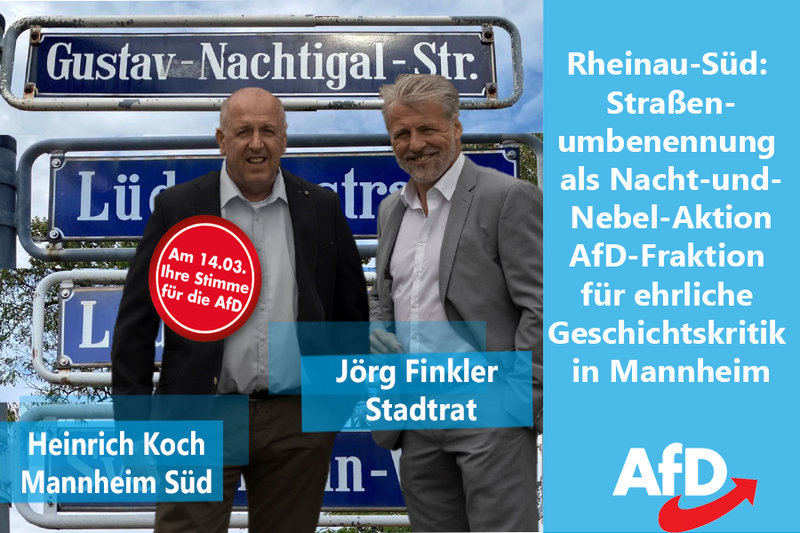Über ihr „Frühwarnsystem“ aus den Stadtbezirken hat die AfD-Ratsfraktion Kenntnis davon erlangt, dass die Rot-Grüne-Rote Ratsmehrheit ihren kulturellen Generalangriff auf die Geschichte und Identität unserer Stadtgesellschaft auf dem Rücken der Siedler in Rheinau-Süd durchexerzieren wollte...