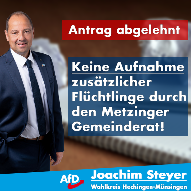 Zusätzliche Flüchtlings-Aufnahme in Metzingen? AfD-Landtagskandidat Steyer begrüßt Ablehnung durch den Gemeinderat