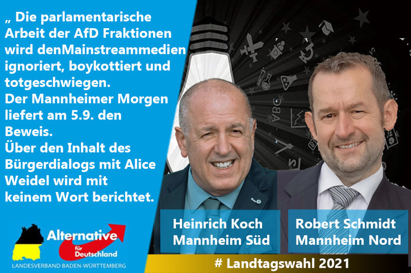 „Die parlamentarische Arbeit der AfD Fraktionen wird in den Mainstreammedien ignoriert, boykottiert und totgeschwiegen“ Kaum habe ich diese Aussage getätigt, lieferte der Mannheimer Morgen den Beweis hierfür frei Haus. Am 4.9. gastierten Alice Weidel und zwei weitere Mitglieder des Bundestages...