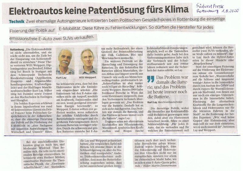 Elektroautos keine Patentlösung fürs Klima vom 01.08.20