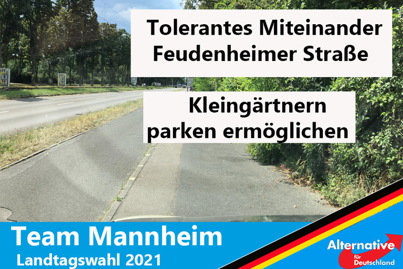 Dem Vorstoß der grünen Verbots und Bevormundungspartei, auf dem Rad und Fußweg an der Feudenheimer Straße ein Befahr- und Parkverbot für Autos zu erzwingen erteilt der stellvertretende Fraktionsvorsitzende der AfD Fraktion im Stadtrat von Mannheim Jörg Finkler eine klare Absage. Es müsse den ...