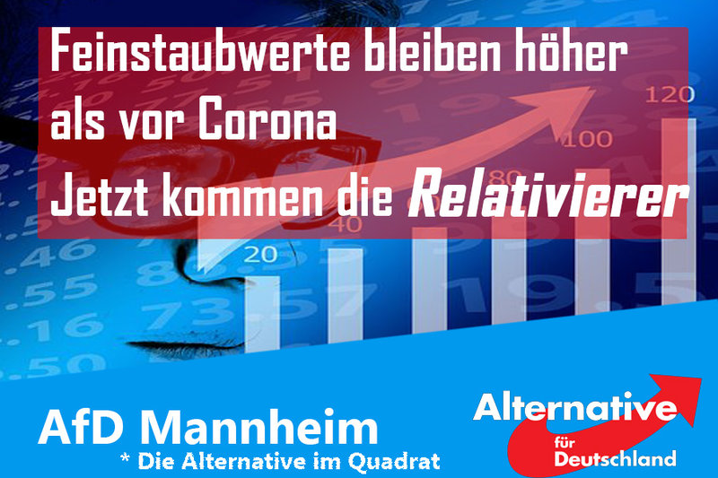 Die Feinstaub und Stickoxidwerte sind immer noch höher als vor der Kontaktsperre anhand der Corona Epidemie. Es fahren deutlich weniger Kraftfahrzeuge Das Gegenteil müßte eigentlich der Fall sein. Es werden jetzt abenteuerliche Theorien präsentiert werden, warum das so ist, immer so war und gan...