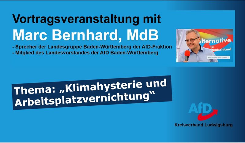 Marc Bernhard, MdB zu Gast in Ludwigsburg - "Klimayhsterie und Arbeitsplatzvernichtung"