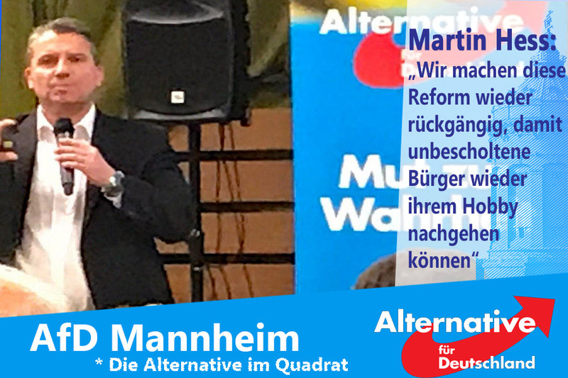 Mit einer Veranstaltung zur 3. Waffenrechtsreform startete die AfD Mannheim ist das Veranstaltungsjahr 2020  Knapp 170 Zuhörer, die vorwiegend aus der lokalen Schützen und Jägerschaft bestand erlebten einen sachlich sehr fundierten Vortag des  AfD Bundestagsabgeordneten Martin Hess. Martin Hes...