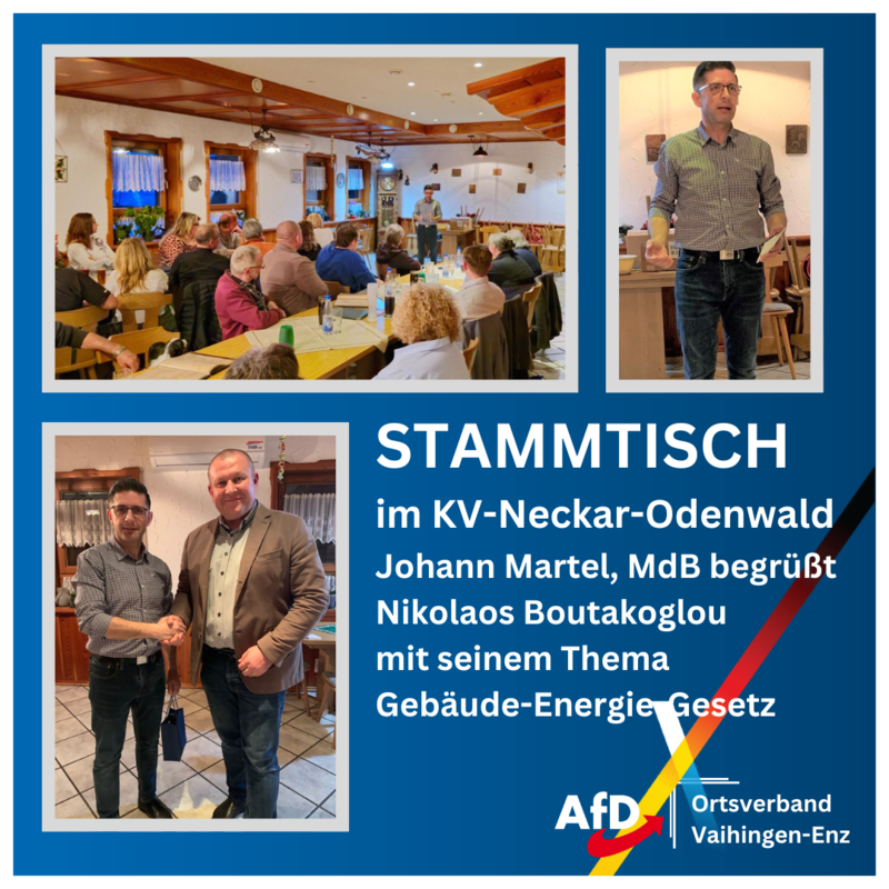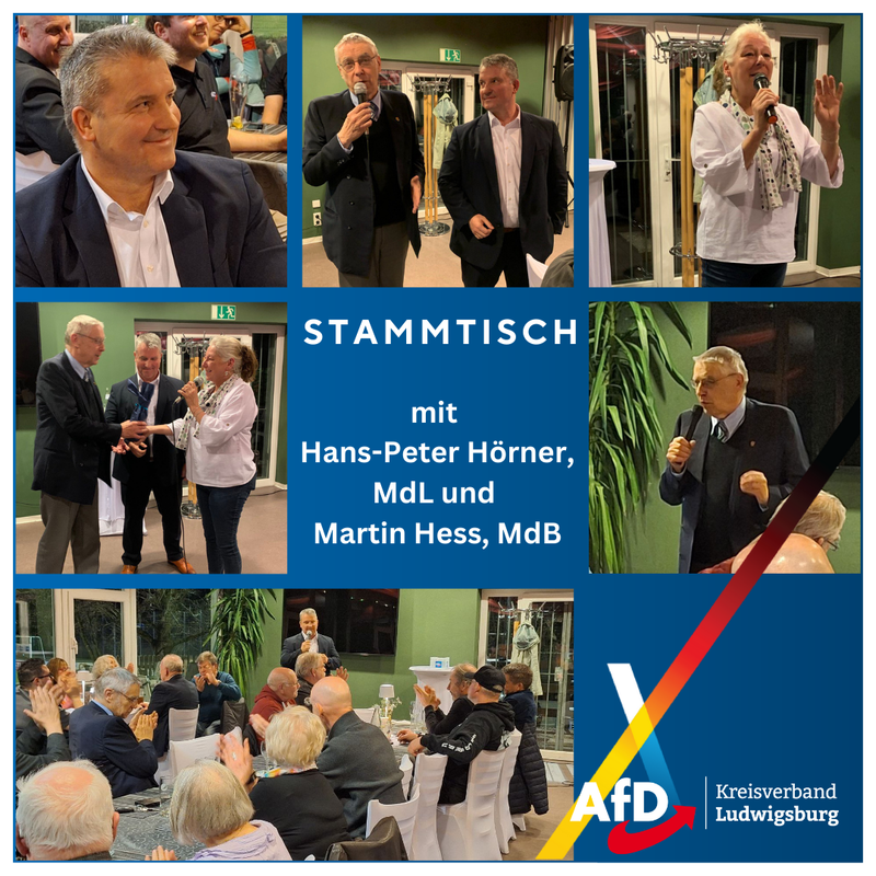 Stammtisch des KV Ludwigsburg am 20.03.2025 Als Redner hatte unser Kreisvorsitzender und MdB Martin Hess, einen gern gesehenen Gast eingeladen: Hans-Peter Hörner,...