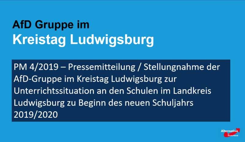 PM 4/2019 – Pressemitteilung / Stellungnahme der AfD-Gruppe im Kreistag Ludwigsburg zur Unterrichtssituation an den Schulen im Landkreis Ludwigsburg zu Beginn des neuen Schuljahrs 2019/2020