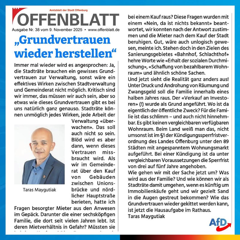 Grundvertrauen wieder herstellen - Taras Maygutiaks Beitrag im Meinungsforum des Offenblatt