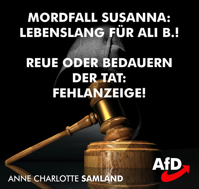 ++ #Mordfall #Susanna: Lebenslange Haft für den Täter Ali B. Reue oder Bedauern der Tat: Fehlanzeige. +++