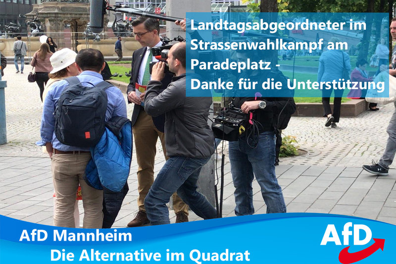 Dieses Wochenende warben wir wieder mit 3 Ständen für unsere Sache. Unter anderem waren wir erneut am Paradeplatz aktiv. Hier hatten wir die Unterstützung des Landtagsabgeordneten Lars Patrick Berg, der es sich nicht nehmen ließ, zwischen zwei Terminen den Kontakt zum Wähler auf den Planken zu ...