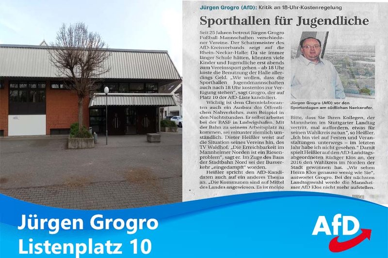 Sportvereine sind ein wichtiger Schlüssel für eine gelungene Integration. In Sportvereinen lernen junge Menschen im sportlichen Wettkampf den Umgang miteinander. Sie lernen Konflikte auf friedliche Art und Weise zu regeln. Die AfD setzt sich dafür ein, Sportvereine zu fördern und bei ihrer wicht...