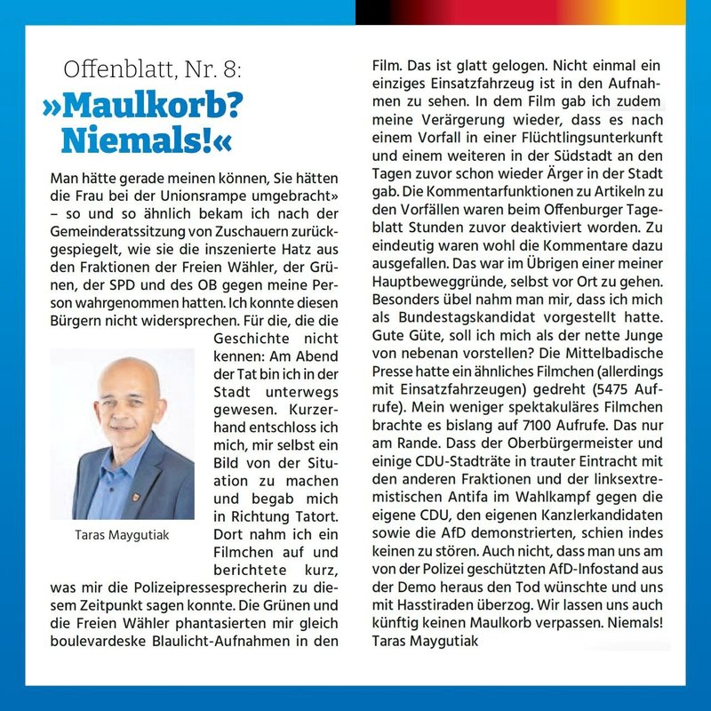 Maulkorb? Niemals! Taras Maygutiaks Beitrag im Meinungsforum des Offenblatt