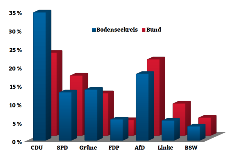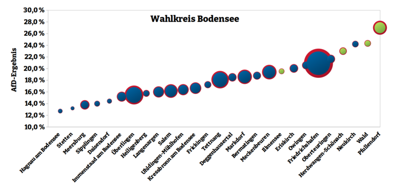 Das Wahlergebnis der jungen Volkspartei AfD kann sich mit 18,2 Prozent auch im Bodenseekreis sehen lassen. Es hinkt dem Bundesergebnis von 20,8 Prozent noch ein wen...