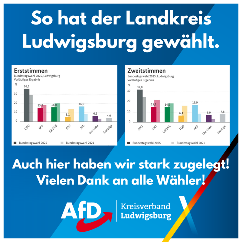 Unser Wahlergebnis kann sich sehen lassen! Vielen Dank an unsere Wähler für das Vertrauen in die AfD!