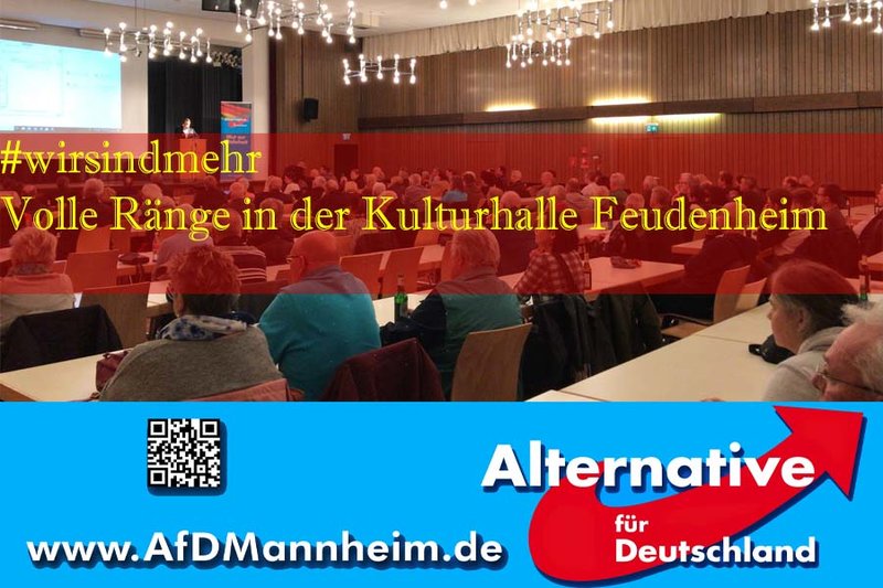 Sehr geehrte Mitglieder, Förderer und Freunde der AfD, am 08.03.2019 lädt die AfD Mannheim zu einer weiteren sehenswerten Veranstaltung, diesmal aber nicht wie sonst üblich ins Schützenhaus Feudenheim sondern in die Kulturhalle Feudenheim. in der Spessartstrasse 24-28 Herr MdB Glaser wird hier...