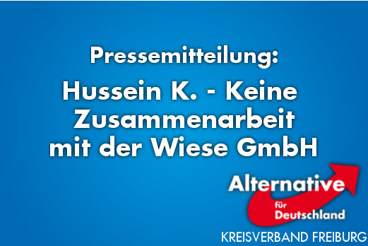 Aufgrund der zu Tage getretenen Unregelmäßigkeiten im Fall des Hussein K. und des freien Jugendhilfeträgers Wiese GmbH fordert der Freiburger AfD-Kreissprecher Andreas Schumacher die Stadt Freiburg und den Landkreis Breisgau-Hochschwarzwald auf, jegliche Zusammenarbeit umgehend einzustellen: „...