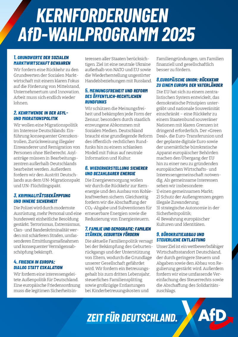 Unsere Kernforderungen: AfD - Wahlprogramm 2025