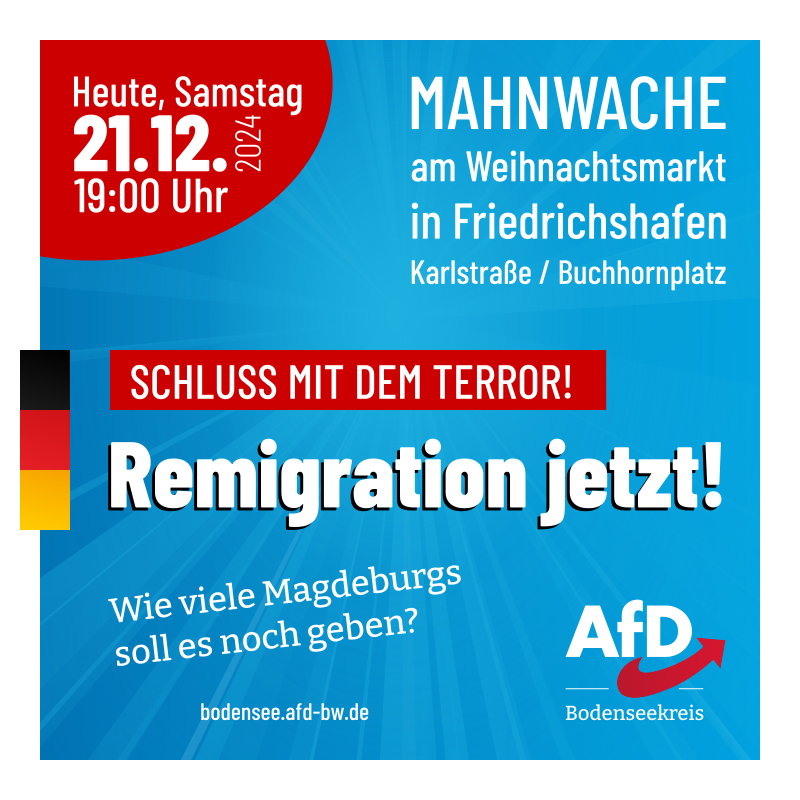 Wie viele Magdeburgs soll es noch geben? Heute Abend um 19 Uhr versammeln wir uns in Friedrichshafen am Weihnachtsmarkt (Ecke Karlstraße / Buchhornplatz) zu einer...