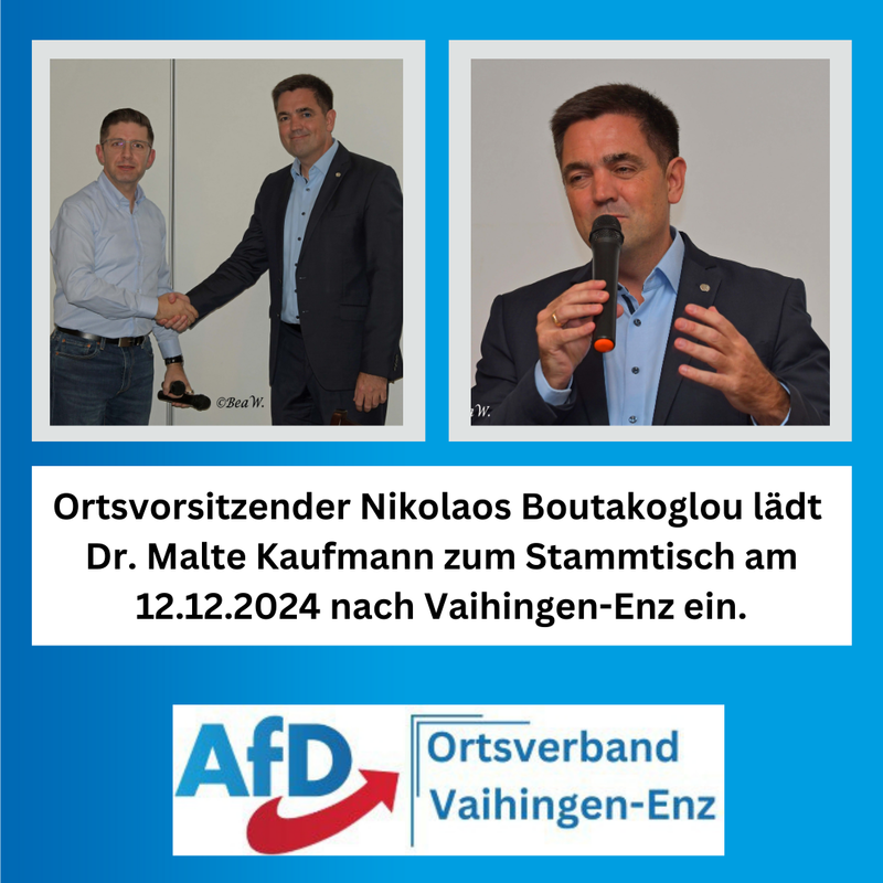 Beim Stammtisch des AfD Ortsverbandes Vaihingen Enz und Umgebung, hat Dr. Malte Kaufmann als Referent zu dem Thema ,,deutsche Wirtschaft im Niedergang“ - ,,so br...