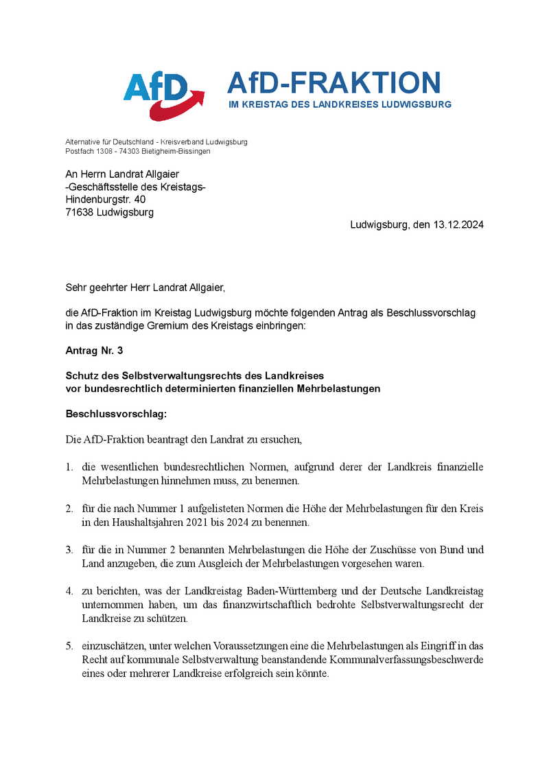 In der Kreistagssitzung am 17.12.2024 in Sinsheim hat die AfD-Kreistagsfraktion den Haushaltsentwurf des Rhein-Neckar-Kreises als einzige Fraktion abgelehnt. Hauptk...
