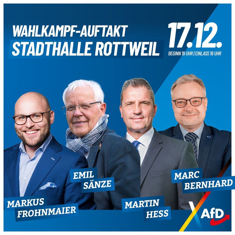 Sind Sie beim Wahlkampfauftakt in Rottweil mit dabei, wir freuen uns auf Sie! Einlass ab 18.00 Uhr, Beginn 19.00 Uhr.