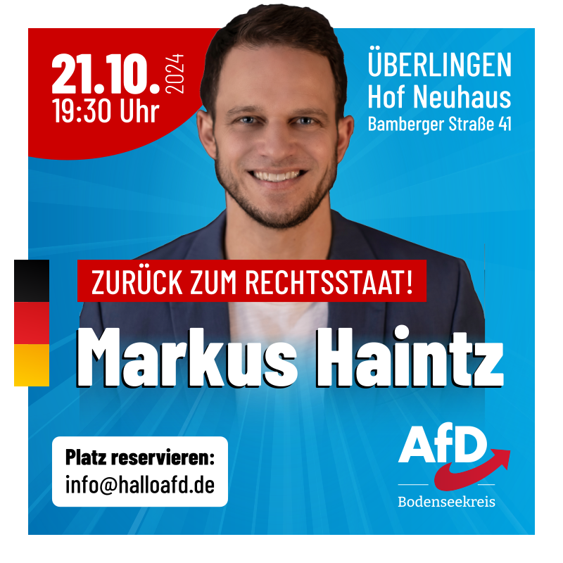 AfD-Stammtisch WEST am Donnerstag, 17. Oktober 2024 um 18 Uhr im Hof Neuhaus Das Geschehen im Kreistag und Gemeinderat Aktuelles zur Wahl des Oberbürgermeister...