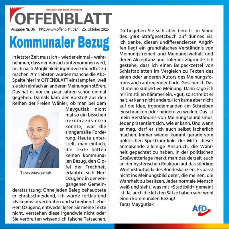 Kommunaler Bezug Taras Maygutiaks Beitrag im Meinungsforum des Offenblatt